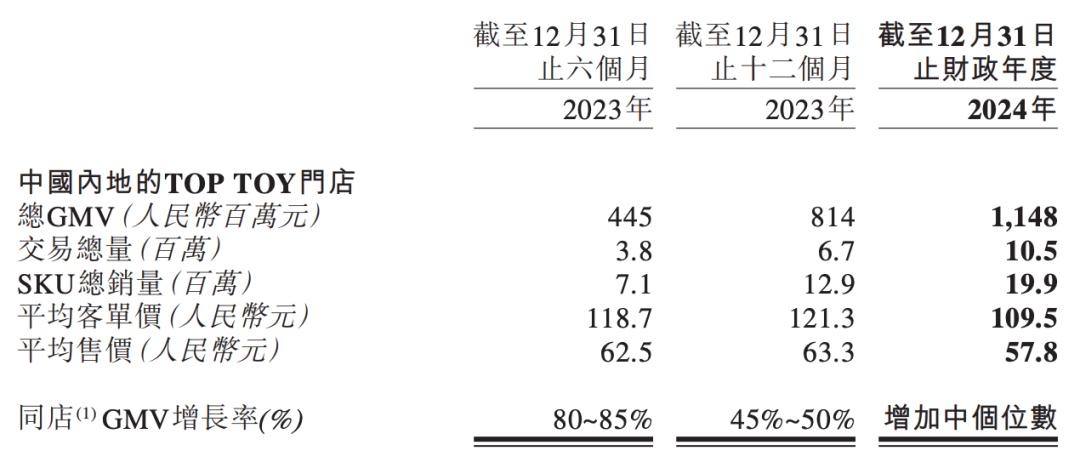 从23年至24年,TOP TOY的门店数量从148家增加到276家,未来应该在渠道方面还有很大的增长空间。但是它的同店GMV增长率已经从23年的45%-50%放缓到“中个位”。