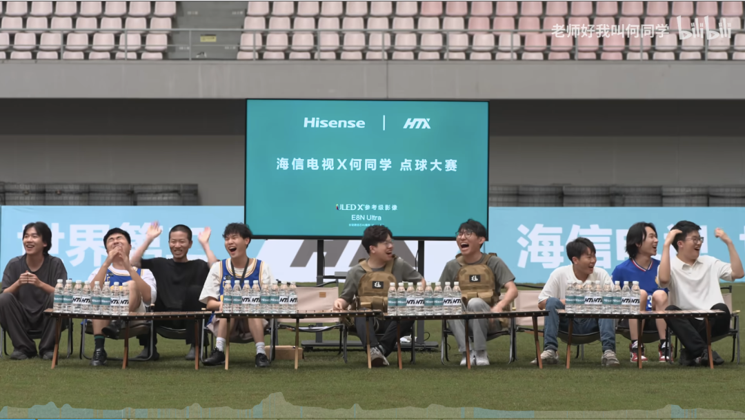 特别是2024年欧洲杯期间,海信作为比赛的官方赞助商,联动“老师好,我是什么同学”,让“什么同学”工作室的朋友们分组发挥动手能力,用自主设计制造的机械设备进行“点球比赛”。综艺感的游戏形式和现场“整活”的直播效果,不仅获得了超过1800万的播放量,还让海信E8N在节目现场播放高速视频。 Ultra电视有自己的“高光时刻”。
