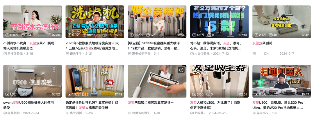 对习惯于在哔哩哔哩“抄作业”的消费者来说,差异化的内容玩法也有奇效。同类产品卷参数时,清洁家电品牌UWANT看到场景需求,通过与哔哩哔哩动物圈、影视、生活等分区UP所有者的合作,通过宠物、家务等不同场景的内容,实现洗车产品的种草。然后,通过科技区域的真实评价内容,结合客户需求关键词,准确捕捉潜在用户,UP主置顶评论也可以支持一键跳转,直接通过消费路径的最后一个环节,实现快速转换。