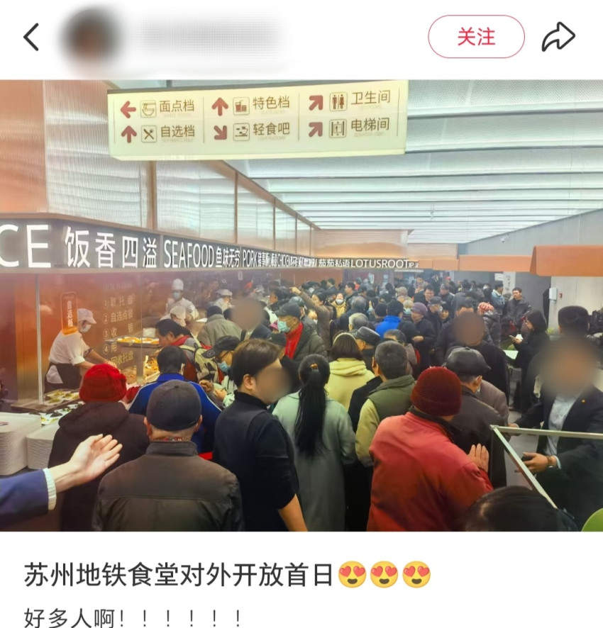 最近,苏州推出了全国第一家地铁食堂,吸引了不少网友前来打卡,地铁站每天都挤满了来吃饭的人。