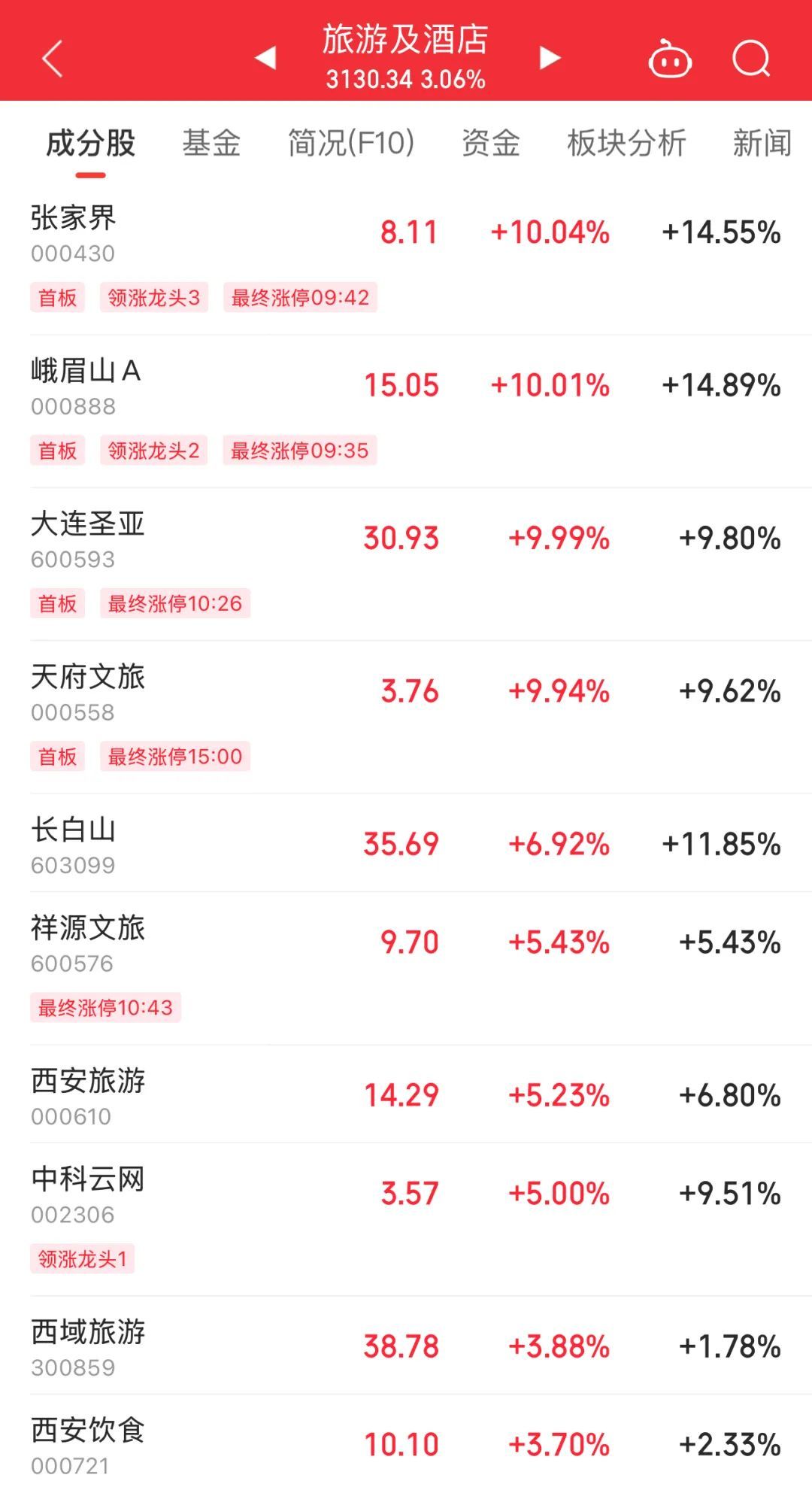如今,旅游业和酒店业都在上升。 多股涨停,如张家界、峨眉山A。