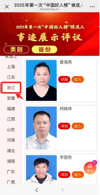点击“详细”浏览好人事迹。