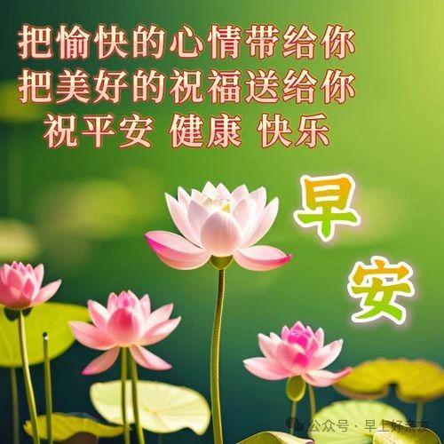 早上放飞祝福,进行新的一天。福禄寿喜出望外,平安喜出望外。幸运星会陪伴你,幸运星会陪伴你前进。快乐每一天,万事如意,祝你新的一天,新的成功!