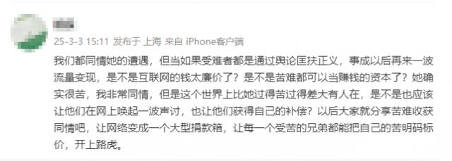 假如受害者通过舆论来维护自己的权利,但事成后都有一波流量变相,那么网上的钱是不是太便宜了?