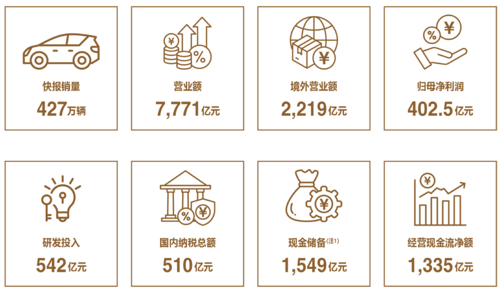 三月二十四日,比亚迪股份有限公司(比亚迪,002594.SZ;01211.HK)2024年,公司实现营业收入771.02亿元,同比增长29.02%。;2024年净利润402.54亿元,同比增长34%;基本上每股收益13.84元。计划向全体股东发放39.74元(含税)的现金红利,现金红利约为120.77亿元。