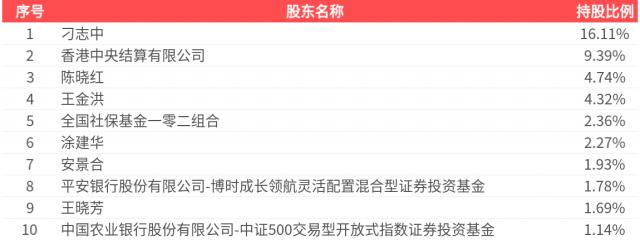 公司股东户数为 10.31 万家,前十大股东持有的股份数量是 7.56 亿股,占总股本的比例为亿股。 前十大股东45.74%的持仓情况如下: