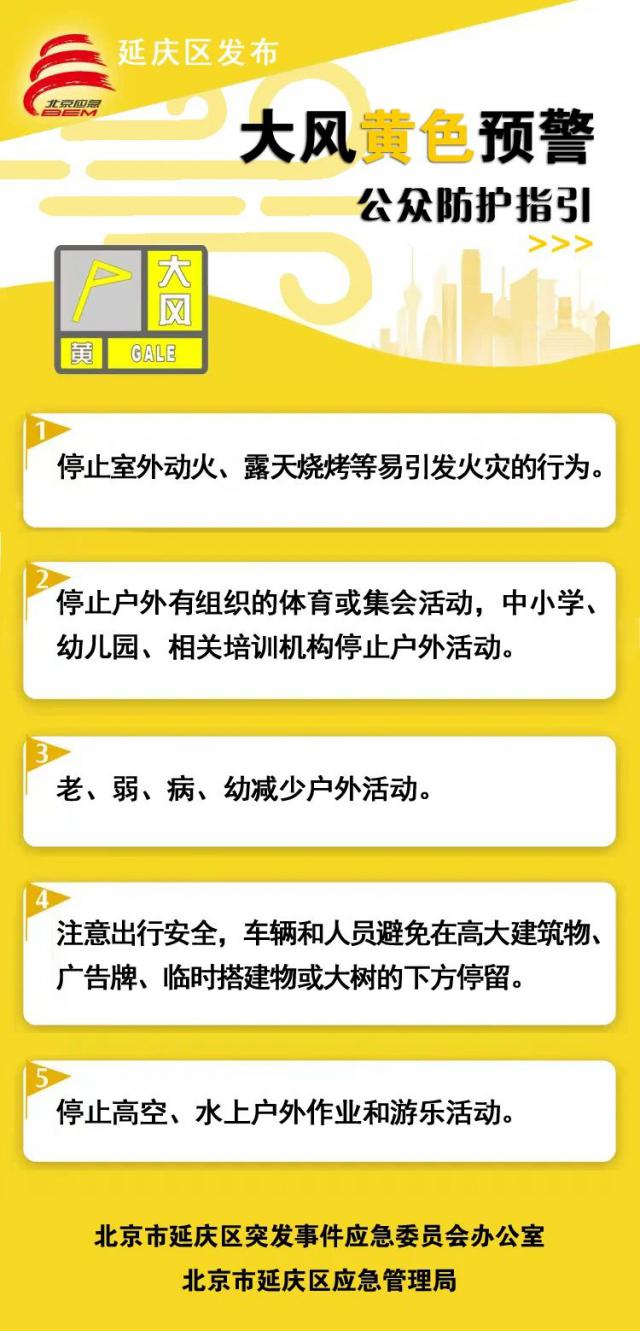 阵风8、9级!延庆发布大风黄色警告信号,请注意预防。