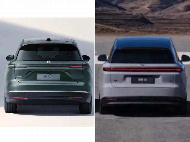 蔚来 es8 和理想 i8 后视图对比,区别主要在于车顶。