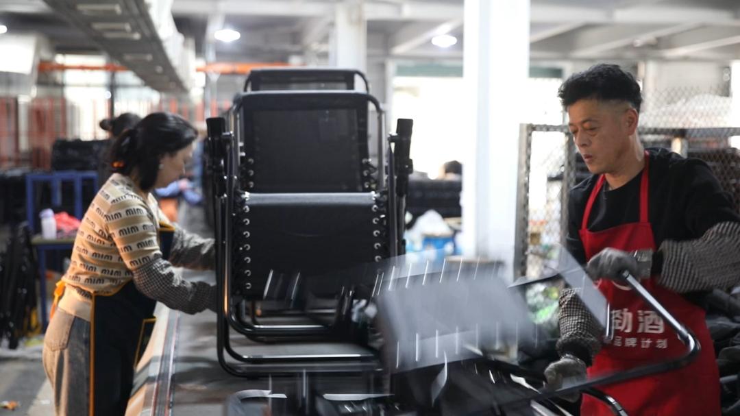 “这段时间很忙。我们早上7点开始工作,晚上5点下班。我们是季节性产品,去年收到的订单仍处于满负荷生产状态。”生产线负责人江云廷表示,两条生产线每天可以生产4000多把椅子,预计今年4月底将完成2024年的所有外贸订单。