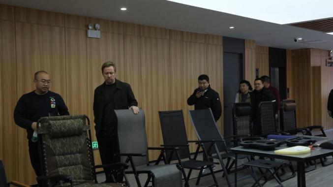2024年,该公司生产了100万张休闲椅,总价值超过1亿元,同比大幅增长60%,其中出口价值达到1535.65万元。2025年年初仅三个月,生产线已全速运行1000多个小时,累计下线20万件成品。不但生产线全线运行,全球订单也源源不断。欧洲头部供应商代表在工地展厅实地考察新样品。