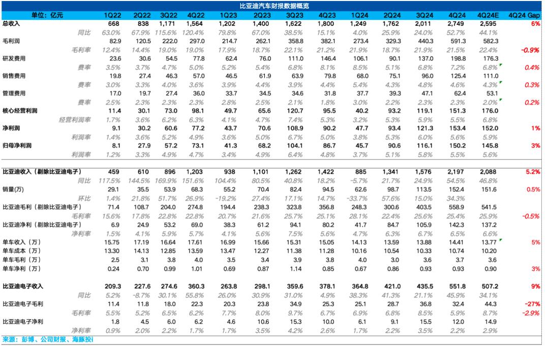 比亚迪(1211.HK)于北京时间 三月二十四日晚,港股盘后发布 2024 年度第四季度业绩。要点如下: