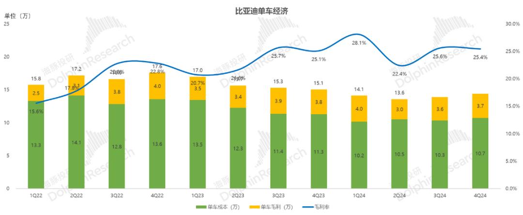 ② 比亚迪继续增加对智能化的投资:一直以来,比亚迪中高端车型的不足还在于智能化,而比亚迪则在智能化方面为2025年的智能驾驶权投资做准备。比亚迪在神眼C上的算法还是以自主研发为主,也加快了对城市NOA算法的追求,逐渐形成了自主研发的替代品。因此,高R&D投资的增加是可以理解的。尤其是2025年,比亚迪开始卷入“智能驾驶平等权利”的竞争,这基本上意味着新能源汽车行业已经从上半年的电气化逐渐过渡到下半年的智能化竞争。