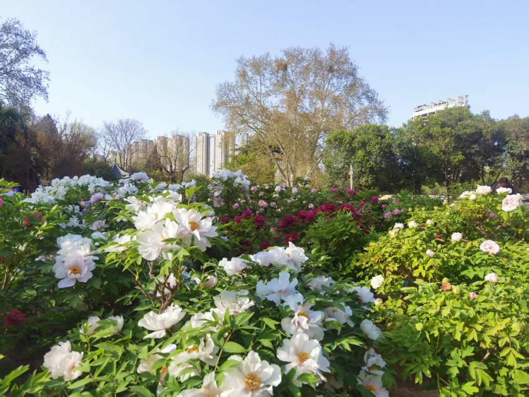 王城公园:全园牡丹开放品种约160个,主要分布在沉香楼、牡丹仙子等场所。盛开的牡丹品种有景玉、贵妃插翠、二乔、香玉、青龙卧墨池、首案红等。第一个牡丹品种包括墨楼、荷花、莲花绿、黑海撒金、明月花、彩绘、红珠等。樱花、垂丝海棠、丁香、蓝桃等。在公园里盛开。