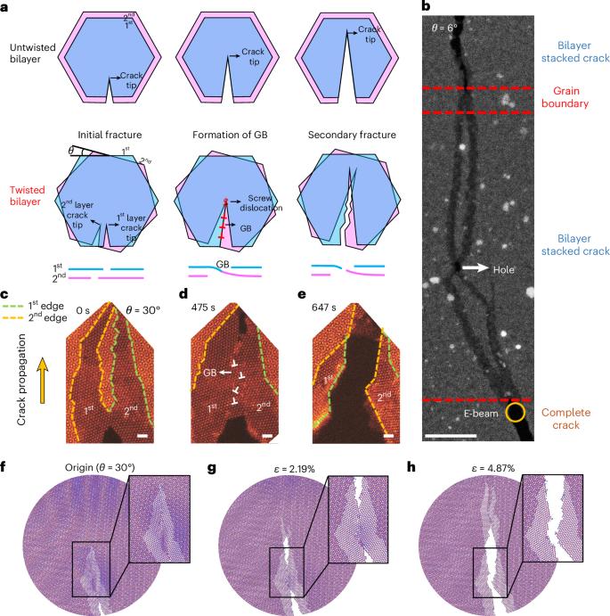 图1: 在二维扭角MoS2中,原点TEM观察断裂过程。