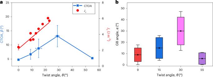 此外,由于完美双层的第一次断裂和每层晶界的第二次断裂,锯齿形的裂缝路径导致边缘破裂,裂缝的扩展消耗了更多的能量,从而有助于整体增韧效果。我们的原点是扫描透射电子显微镜(STEM)、纳米压痕与理论研究一致表明,硫族化合物两层过渡元素的冲击韧性取决于扭转视角,最高可达未扭转材料的1.9倍。
