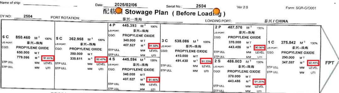 98%是所有装载环氧丙烷船舶必须遵守的最大装舱容量限制,也是第一条“红线”,第二条和第三条“红线”。