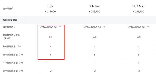智能驾驶硬件方面,低配置与立高配置存在明显差距。智能驾驶芯片的低配置是英伟达 Orin-N,算率 84 TOPS,没有激光雷达,1 一个毫米波雷达;中高配是两个英伟达 Orin-X,算率 508 TOPS,1 一个激光雷达,3 一颗毫米波雷达。