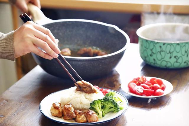 4. 煎鸡腿时的注意事项——煎鸡腿时,要用铲子轻轻按压鸡腿肉,这样才能平整匀称。