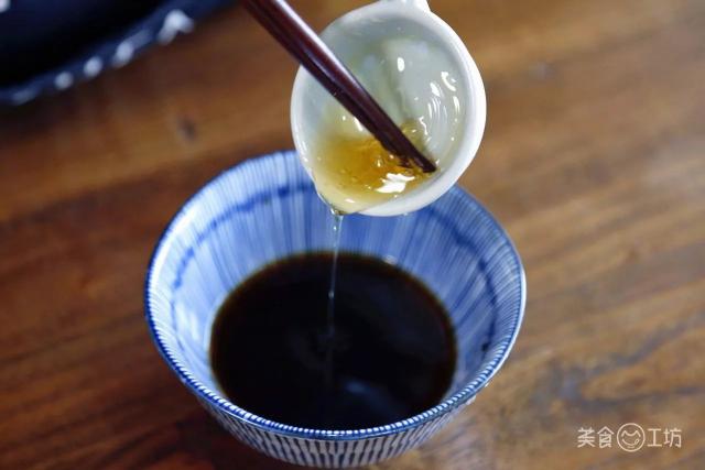 3. 用的 3 只有鸡腿,按 3 勺生抽 2 勺米酒 1 勺子蜂蜜比例调整酱料备用。