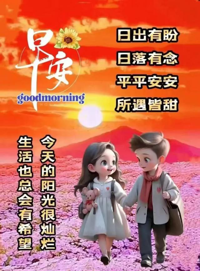 美好的一天从早上开始,阳光照耀着大地,微风吹拂着我们的心。清晨的一缕光照亮了我们前进的道路。让我们抛开烦恼,拥抱幸福,收获快乐,奔向理想。早上好,祝你今天精力充沛,精力充沛!