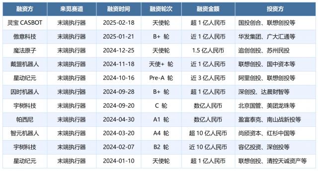 图表 6:2024 到目前为止,终端执行器跑道主要投融事件超过1亿元。