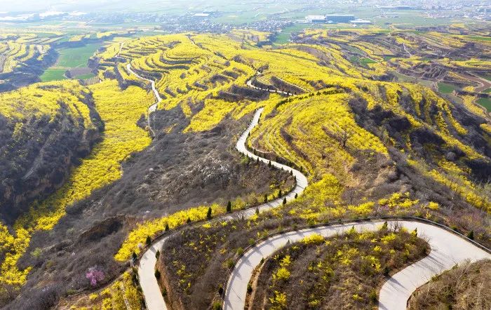 ▲连翘花海,正是踏青的好时机。