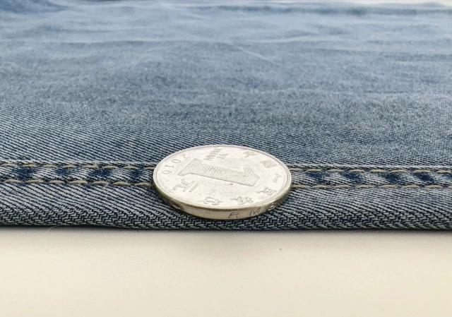 整体布料比传统牛仔裤薄了好几倍,和硬币差不多厚,这种天气穿得恰到好处,轻而不闷。