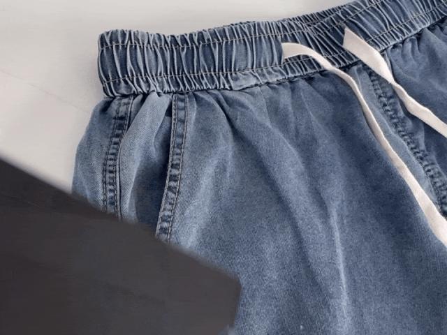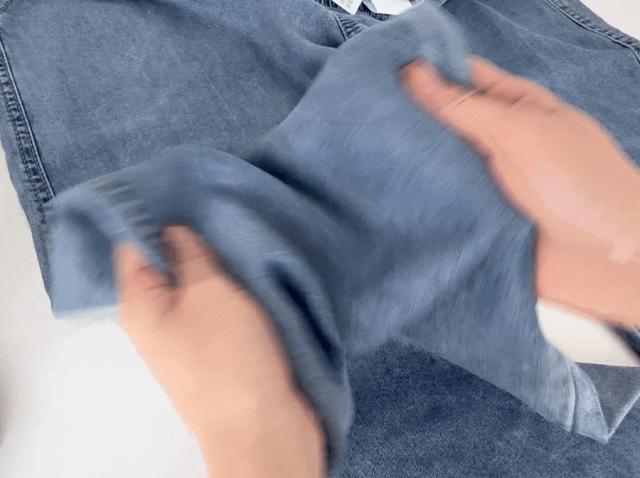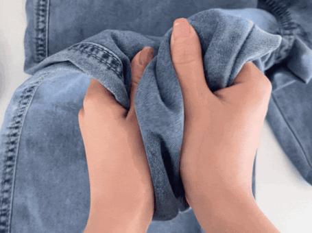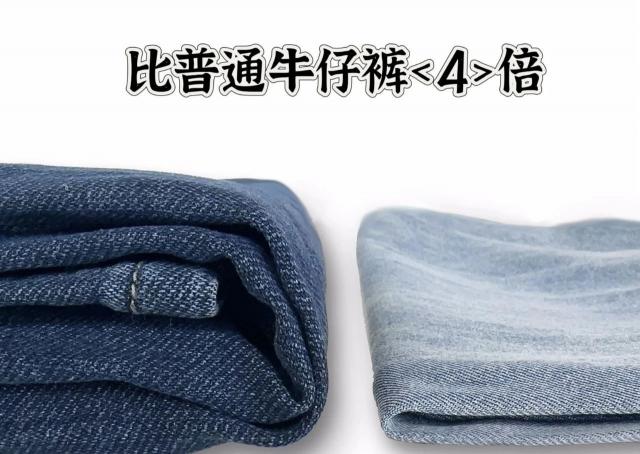 即使折叠几次,也比普通牛仔裤薄!穿在身上很舒服。 ~