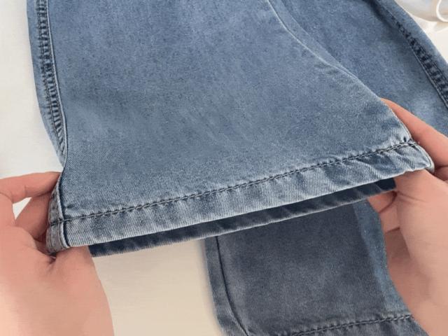 而且我们的牛仔裤是宽松的直筒款式,3D 立体裁剪,包容性很强,不管什么身材都可以轻松控制。
