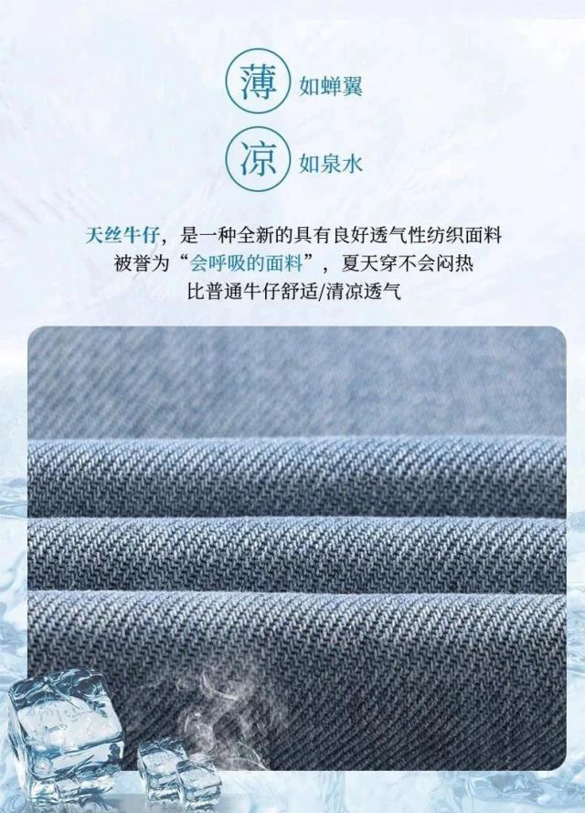 经过小编的努力,终于找到了一条质地轻薄的薄牛仔裤【啄木鸟莱赛尔天丝直筒牛仔裤】,柔软透气,不易发热。