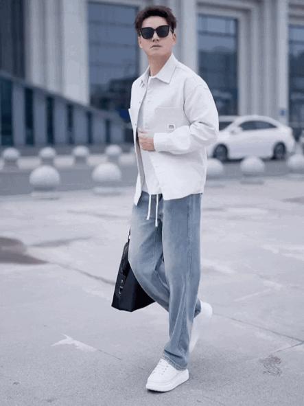 但是选牛仔裤并不简单,款式千万:直筒裤,休闲裤,小脚裤,一不小心就成了精神小伙。