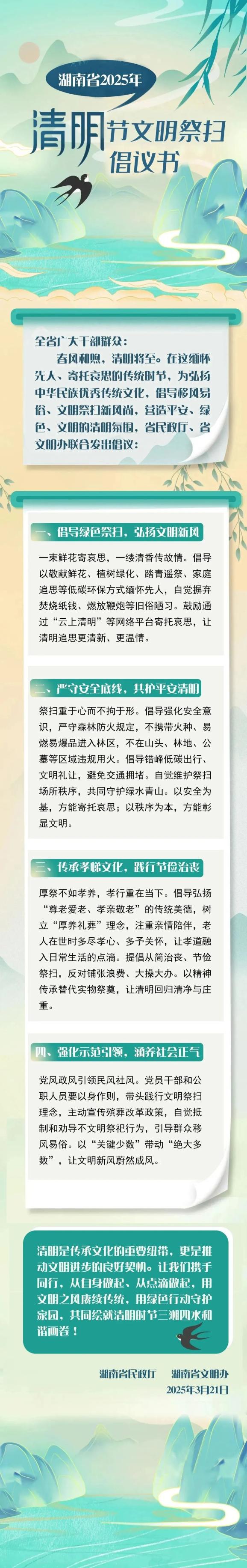 《2025年湖南省清明节文明祭扫倡议书》发布