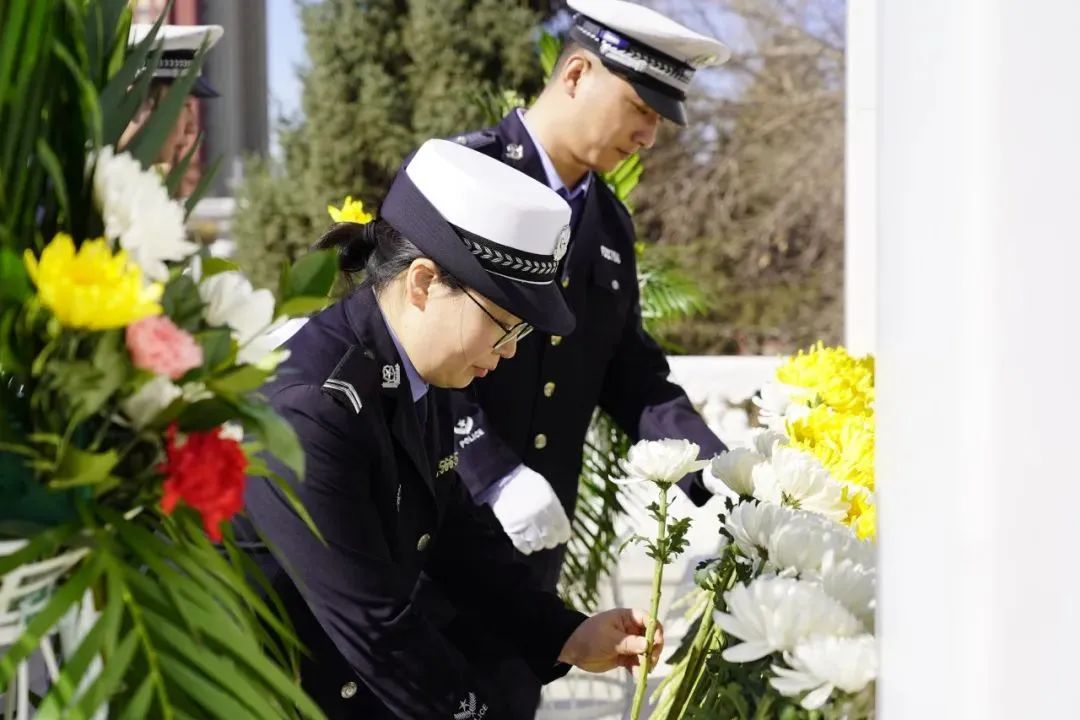 在庄严肃穆的纪念碑前,10名年轻警察拿着花篮上前排队,向他们致敬,向他们致敬。每一个花篮都承载着无限的思念,对革命先烈的崇高敬意,凝聚着传承使命的坚定信念。
