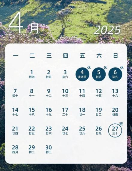 2025年清明节假期安排:2025年4月4日(星期五)-4月6日(星期天),共放假3天,4月7日照常上班。