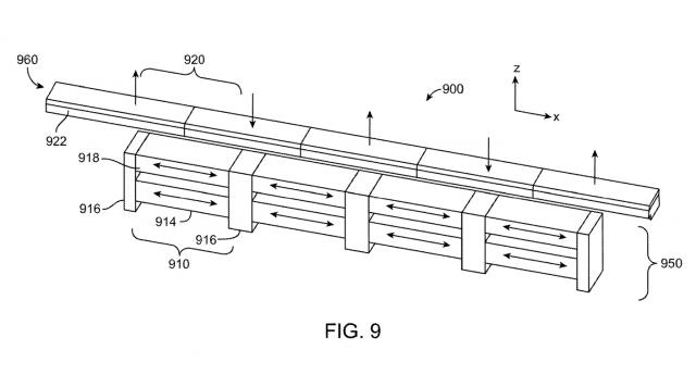 “电永磁体阵型”是新专利的核心组合(EPM array)固定磁体阵型。EPMs 磁极转换方向只需要瞬时电流:单向脉冲激活磁场,反向脉冲完全关闭。它最大的优点是断电后仍然可以保持当前的磁状态,只需在切换时消耗电能。系统可以灵活产生吸力(关闭固定)、三种模式:斥力(弹开屏幕)或零磁场(使用中防影响)。