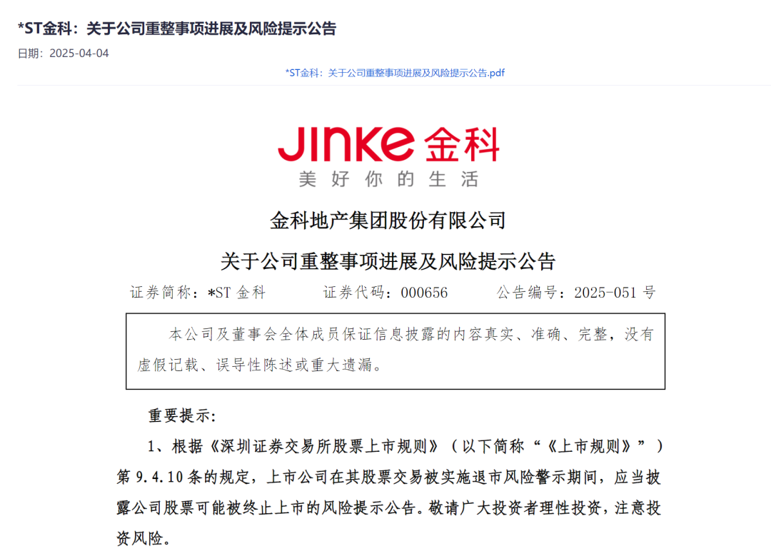 四月三日,金科地产集团有限公司披露了公司重组事项的最新进展。