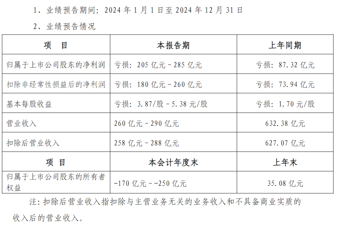 一月二十四日,金科股权公布2024年业绩预告,2024年,该公司估计亏损205亿元~285亿元。