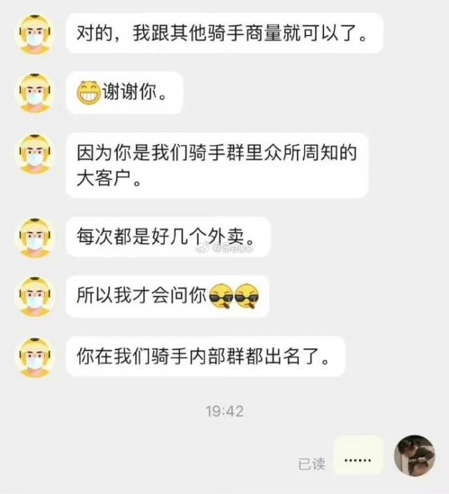 点外卖点直到在骑手群中出名。
