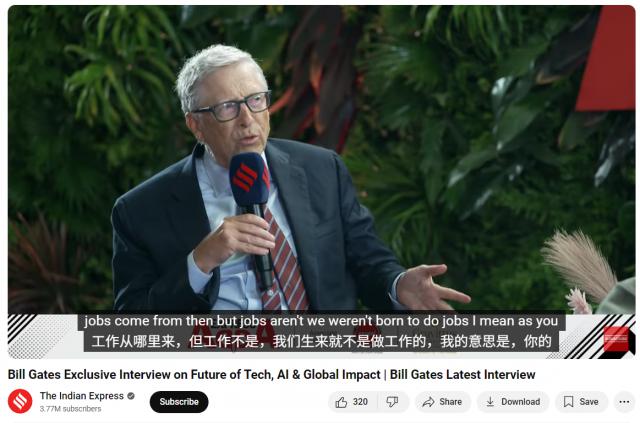 在今年 3 在接受《印度快报》采访时,比尔・盖茨分享了更多关于它的信息 AI 对于工作影响的看法: