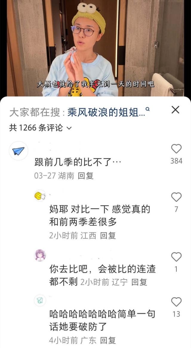 房琪才女子设崩溃,彭小苒发文告别,《浪姐》再次把握热度。