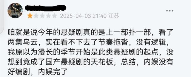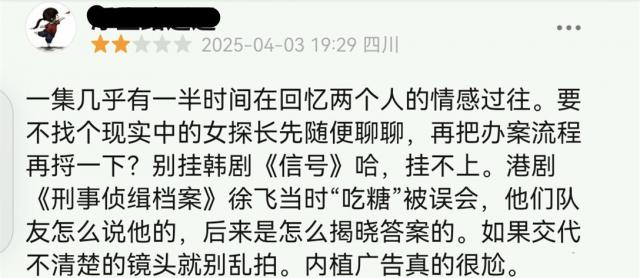 观众的评价虽然犀利,但也算是一针见血,指出了剧中的问题。但是刚开播的时候案例信息还是比较少的,就看后续剧情逻辑能不能上去了。