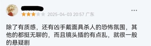 有些观众感叹,虽然气氛不错,但是镜头剪辑非常混乱,导致剧情效果一般。