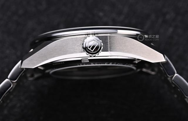 和周日历手表一样,这款手表的表壳还是用精钢做的,经过抛光和磨砂处理后更具运动感。41 毫米表壳组合抛光精刚固定表圈,既保留了运动风,又使手表看起来非常圆润,不挑组合。