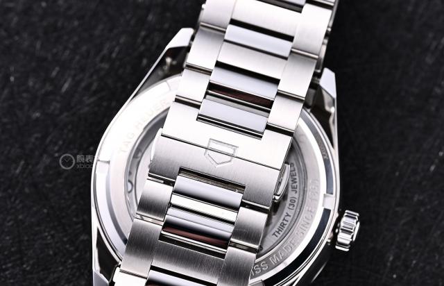 与这款蓝色盘面手表相匹配的是一条三列精致的手表链,增加了手表的商务休闲风格,让手表更容易搭配。双重安全按钮的精细磨砂抛光双折扣扣上刻有泰格豪雅盾徽,在细节上凸显品牌魅力。