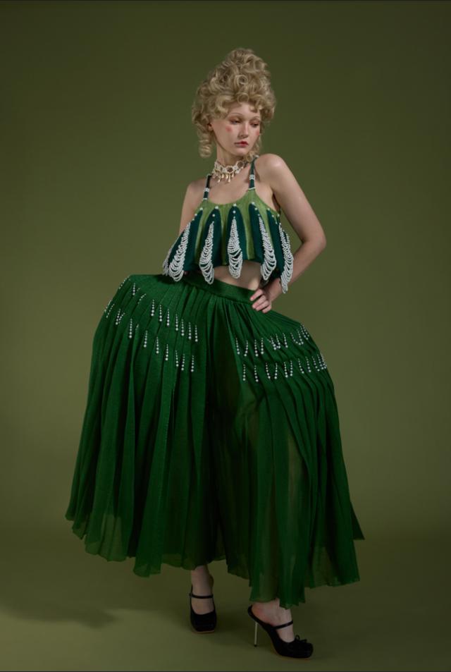上海时装展 800 秀创意园区分会场,10 东华大学服装与艺术设计学校的尖端设计师以灵感为燃料,以创新为画板,以自己独特的视角勾勒出对未来时尚的想象和诠释。2025 “前沿东华”以“自由成长”为主题,专注于作品中的环保和可持续时尚,探索绿色时尚的未来路径,通过旧衣改造、零废弃设计和数字虚拟服装辅助技术,为行业可持续发展贡献新思路。有些作品大胆挑战服装的构成逻辑,借助人工智能生成前所未有的创意形态,让科技与艺术相结合,产生惊人的火花。还有深入材料创新和新技术领域的设计师,智能纤维,3D 印刷等尖端技术融入时尚设计,赋予作品未来十足的生命力。