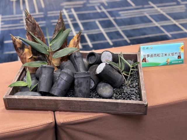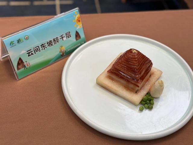 上海佘山世茂洲际酒店中餐行政总厨丁奇峰带来了“兰笋卤肉松江米火竹炭”,造型独特“弹眼落睛”。“我创作这道菜的初衷是为了恢复童年的味道。用竹衣包裹红烧肉、兰笋和米饭,然后烘烤,敲开竹筒时,笋香、米香、肉香交织,扑面而来。"丁奇峰介绍道。上海科技职业技术学院参赛选手丁毅的“云中东坡醉千层”,将东坡肉的咸味和甜味与兰笋的香味相结合,再加上青豆和冬瓜作为点缀,尽显诗意。