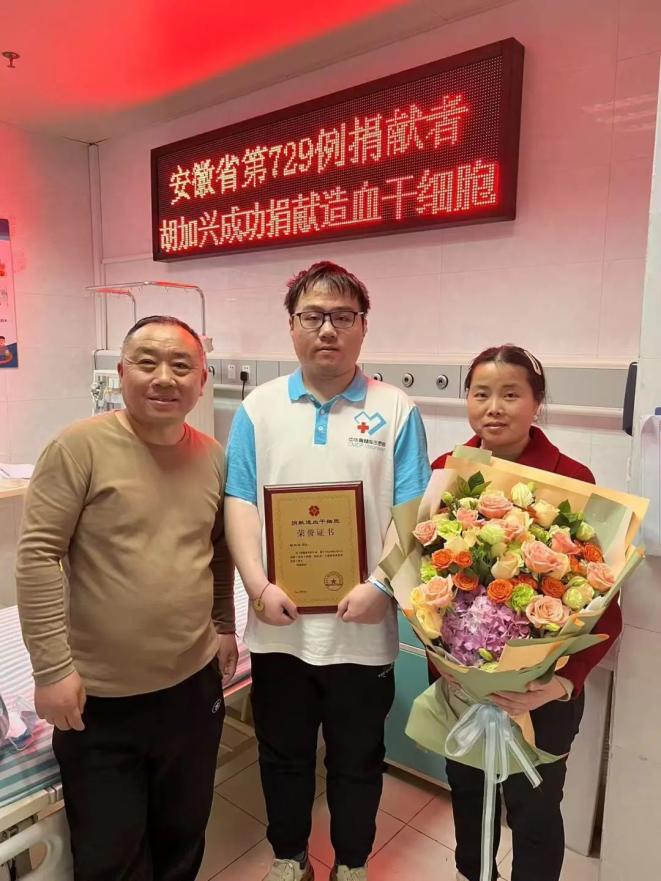 时光飞逝。2024年10月,胡加兴突然接到蚌埠市红十字会工作人员的电话,对方告诉他,他已经成功与一名患者进行了初步匹配。“这么小的概率落在我身上,既惊讶又幸运。”胡加兴说。虽然他对捐赠过程有些陌生,但他的第一反应是同意。“毕竟,拯救生命对他自己没有伤害。”
