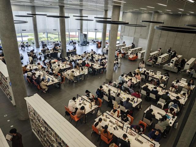 宁波图书馆自习区很早就挤满了人。很多市民选择在诗歌中度假,或者埋头备考,或者和父母孩子一起读书。专注于阅读的场景随处可见。据统计,宁波图书馆三个图书馆区在假期第一天进入图书馆的人数达到 1.23 人次。