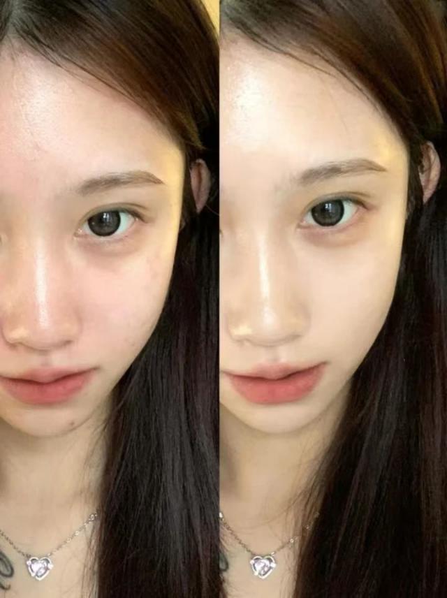 上妆后,原本干燥油腻的皮肤就像喝了足够的水一样,变得服服贴贴。