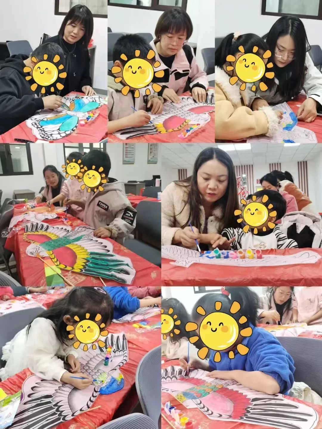 活动为“爱心妈妈”和孩子们生动地诠释了清明习俗,从庄严肃穆、缅怀祖先的扫墓祭祖,到加入大自然,享受春天的郊游,再到承载愿望、放飞梦想的风筝。每一个传统习俗的背后,都蕴含着古人的生活智慧,充满了祖先对美好生活的向往。小孩围坐在一起,听得津津有味,不时提出好奇的问题,现场互动热烈。 接着,孩子们期待已久的绘画风筝阶段正式开始。为儿童准备了白色风筝和完整的绘画工具,五彩缤纷的色彩瞬间点燃了儿童的创作热情。有的孩子在风筝的角落里小心翼翼地雕刻,用彩笔慢慢涂抹;有的大胆拿起颜料,肆意挥洒,尽情展现心中的浪漫春天。爱心妈妈也参与其中,与孩子紧密合作,帮助配色,提出建议。思维的碰撞产生了奇怪的创造力,原本简单的图案逐渐丰富起来,整个场景充满了温馨幸福的氛围。